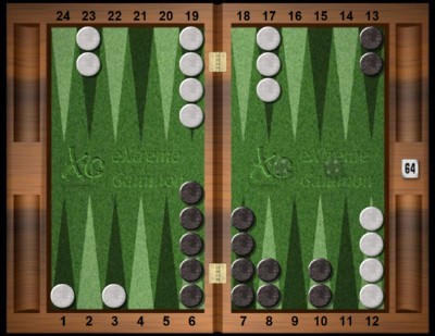 Black tosses boxcar 66s, and moves a pair of checkers to both barpoints.